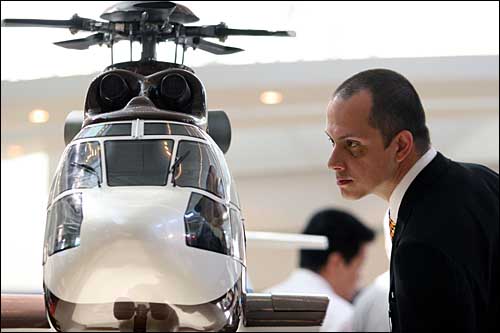 5月17日,一位參觀者觀看警用直升機(jī)模型。當(dāng)日,第二屆中國(北京)國際警用裝備及反恐技術(shù)裝備展覽會在北京展覽館開幕。警用裝甲車、新式反恐裝備等展品令觀眾大開眼界。