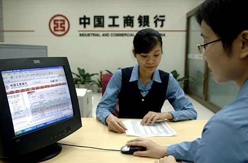 7月16日,中國(guó)工商銀行?诃偺┲泄ぷ魅藛T在為客戶辦理國(guó)債業(yè)務(wù)。財(cái)政部于當(dāng)日起發(fā)行總規(guī)模為383.8億元的2007年第十一期記賬式國(guó)債。本期國(guó)債為固定利率附息債,期限3年,經(jīng)投標(biāo)確定的票面年利率為3.53%。