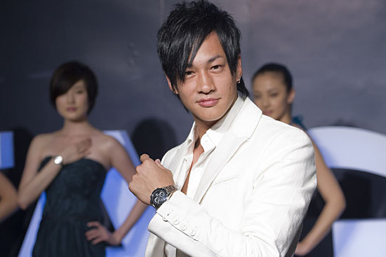 圖為何潤東與模特們同走手表秀。日前,世界第四大腕表品牌豪雅表宣布影視歌三棲明星何潤東成為其最新中國內(nèi)地及港臺地區(qū)形象大使。