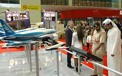11日,幾名觀眾在阿拉伯聯(lián)合酋長(zhǎng)國(guó)迪拜國(guó)際機(jī)場(chǎng)展覽中心的美國(guó)波音公司展位前參觀。當(dāng)天,第十屆迪拜航空展在迪拜國(guó)際機(jī)場(chǎng)展覽中心開(kāi)幕。迪拜航空展是世界三大航空展之一,本屆共有來(lái)自50個(gè)國(guó)家和地區(qū)的900多家展商參展。