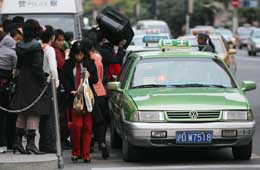 11月18日,乘客在上海徐家匯一出租車候車點(diǎn)候車。 近日,為應(yīng)對(duì)油價(jià)調(diào)整給出租汽車運(yùn)營(yíng)帶來(lái)的影響,上海市政府出臺(tái)相關(guān)政策,對(duì)出租汽車行業(yè)實(shí)施油價(jià)臨時(shí)補(bǔ)貼。此次油價(jià)臨時(shí)補(bǔ)貼由政府和企業(yè)共同承擔(dān),具體方案為:頂燈出租汽車雙班車每車每月補(bǔ)貼250元,單班車補(bǔ)貼按雙班車補(bǔ)貼的75%計(jì)算,補(bǔ)貼時(shí)間從今年11月1日起。 |