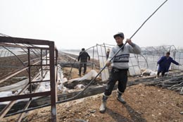|  |  2月17日,舒城縣農(nóng)科所工作人員在進(jìn)行災(zāi)后重建。1月中下旬,安徽舒城縣遭遇罕見雪災(zāi),工農(nóng)業(yè)生產(chǎn)、群眾住房以及供電、廣播、通信、交通等基礎(chǔ)設(shè)施損失嚴(yán)重。目前,當(dāng)?shù)卣褪転?zāi)群眾同心協(xié)力,正采取一系列措施積極開展災(zāi)后重建和生產(chǎn)自救。 |  |
