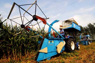 |   山東鼓勵(lì)發(fā)展青貯玉米種植。8月29日,大型機(jī)械在山東臺(tái)兒莊區(qū)吳莊村田地里收割青貯玉米。新華社發(fā)(高啟民
