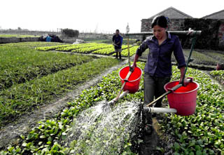 |  |  10月28日,臺州市路橋區(qū)橫街鎮(zhèn)湖頭村農(nóng)民正在為蔬菜澆水。 2007年3月,浙江省臺州市路橋區(qū)橫街鎮(zhèn)湖頭村通過成立天湖土地股份合作社,農(nóng)民自愿以土地入股,并對入股的土地進(jìn)行統(tǒng)一經(jīng)營管理,有效盤活了土地,提高了農(nóng)業(yè)效益,增加了社員的收益。