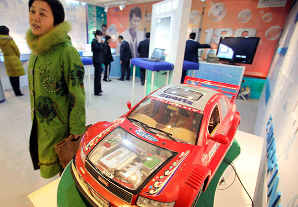 1月5日,一名參觀者在汽車信息化展區(qū)參觀。