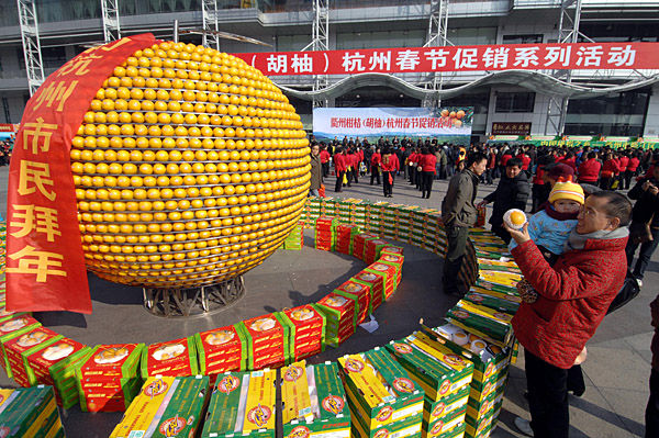 1月14日,浙江衢州柑橘(胡柚)杭州春節(jié)促銷活動(dòng)在杭州舉行。面對(duì)嚴(yán)峻的銷售形勢(shì),衢州市委、市政府專門出臺(tái)政策,采取開拓市場(chǎng)、開辟綠色通道、單位幫扶、信貸保障等多方面舉措,幫助橘農(nóng)解決“賣橘難”問題。