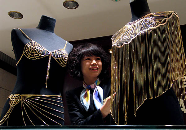 3月10日,濟南一家金店展出用18K黃金打造的披肩和內(nèi)衣。
