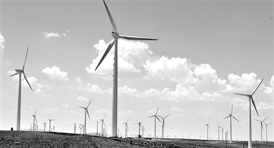 寧夏將大規(guī)模開發(fā)以風能、太陽能為代表的綠色能源。根據(jù)自治區(qū)政府最新出臺的新能源發(fā)展規(guī)劃,到2020年,寧夏風電總裝機將達到500萬千瓦以上,建成200萬千瓦太陽能光伏并網(wǎng)項目,屆時新能源發(fā)電占全區(qū)電力總裝機容量的比重達18%。圖為寧夏太陽山風力發(fā)電場一角。