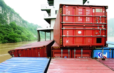 發(fā)生事故的集裝箱船上部分集裝箱落水(8月11日攝)。一艘裝載有危險(xiǎn)化學(xué)品的集裝箱滾裝船10日深夜在長(zhǎng)江三峽大壩—葛洲壩水域發(fā)生集裝箱落水事故,幸無(wú)人員傷亡。目前已知有62個(gè)集裝箱落入江中,其中部分屬于;芳b箱。長(zhǎng)江海事局已啟動(dòng)應(yīng)急預(yù)案,派出4艘海事巡邏艇趕赴現(xiàn)場(chǎng)開(kāi)展應(yīng)急處置及海事調(diào)查工作,并調(diào)集大馬力拖輪前往現(xiàn)場(chǎng)施救。同時(shí),進(jìn)行船閘控制運(yùn)行,協(xié)調(diào)梯調(diào)中心控制葛洲壩下泄流量。新華社發(fā)