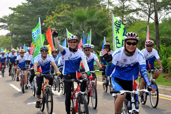 9月22日,海口市近400名自行車愛好者和市民進行自行車巡游活動。 當(dāng)日是第三個“中國城市無車日”,今年“無車日”的主題是“健康環(huán)保的步行和自行車交通”,全國各地開展了自行車巡游、主題展板宣傳、市民簽名等多種形式的活動宣傳綠色出行。