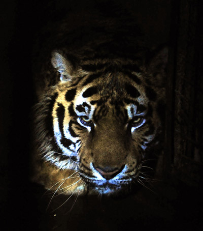 2009年12月至2010年2月底,沈陽森林野生動物園11只東北虎陸續(xù)死亡。 在媒體采訪動物園討薪工人時,工人不經(jīng)意間透露:“老虎都餓死11只了,我們18個月沒發(fā)工資,也快餓死了。” 接受采訪的專家認(rèn)為,我們的養(yǎng)虎技術(shù)沒有問題,但是動物園改由私人經(jīng)營后,很難保證經(jīng)營者有較強的責(zé)任心,死這么多虎肯定是人為造成的。 圖為記者進(jìn)入沈陽森林野生動物園所拍攝的東北虎。