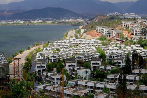 圖為建在已消失的“情人湖”上的“洱海天域”項(xiàng)目別墅區(qū)。 |