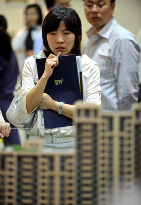 5月13日,一位購房者正在觀看一處每平米售價(jià)四萬元左右的市中心樓盤。 當(dāng)日,今年樓市調(diào)控后的首個(gè)杭州人居展開幕。與調(diào)控前杭州樓市的“火爆”狀態(tài)相比,本屆人居展上樓市開始回歸理性,一邊是購房者謹(jǐn)慎觀望,一邊是房產(chǎn)商紛紛推遲開盤時(shí)間,雙方開始“博弈”樓市的未來。