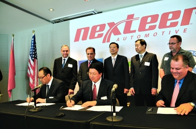 7月12日,中國北京太平洋世紀汽車有限公司與美國通用汽車公司正式簽約,收購通用旗下全球轉向與傳動業(yè)務NEXTEER。按照計劃,收購將于今年第四季度完成。屆時,太平洋世紀汽車公司將擁有NEXTEER100%的股權,并獲得其全球最先進的轉向與傳動技術、產(chǎn)業(yè)經(jīng)驗和客戶資源,從而成為全球頂級轉向與傳動系統(tǒng)供應商。這是迄今為止中國汽車零部件企業(yè)在海外最大的一項收購活動。 上圖:當天,中國北京太平洋世紀汽車有限公司與美國通用汽車公司在美國底特律通用汽車總部舉行簽約儀式。 下圖:2010年7月12日在通用汽車總部大樓內拍攝的GMC汽車方向盤。 |