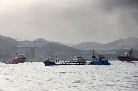 7月18日,遼寧海事局和大連有關(guān)部門把主要人力、物力投入到清除輸油管線爆炸造成的海洋污染上。截至18日15時,遼寧海事局等部門出動海事工作人員400人次,協(xié)調(diào)40多艘次船舶,車輛百余車次,在溢油海域布設(shè)圍油欄已擴(kuò)大到9000多米,清除海洋污染的作業(yè)積極有效。清理過的海域,表面污染狀況有一定改善。