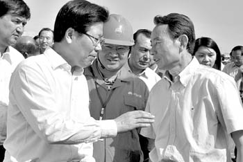 按照部署,中石油2010年領(lǐng)導(dǎo)干部會議安排在新疆獨(dú)山子召開。7月13日下午,前往出席會議的中石油集團(tuán)公司領(lǐng)導(dǎo)班子成員聚首烏魯木齊,與新疆維吾爾自治區(qū)黨委書記張春賢舉行會談。