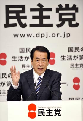 日本首相菅直人連任民主黨代表