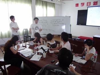 方太集團(tuán)董事長茅理翔在把企業(yè)交給子女后,于2006年創(chuàng)辦專門針對民營企業(yè)的“家業(yè)長青”學(xué)院。圖為“家業(yè)長青”學(xué)院學(xué)員在課堂上組織領(lǐng)導(dǎo)力測評。資料照片 |