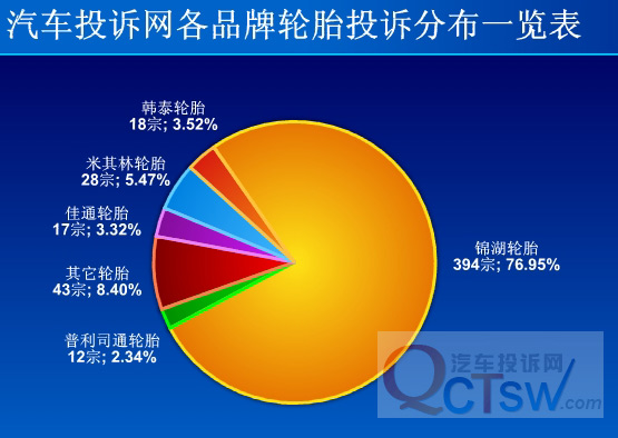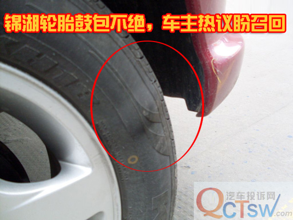 國(guó)慶長(zhǎng)假自駕出游,實(shí)乃人生一大樂事。為了確保出游一路順風(fēng),大家多會(huì)對(duì)車輛進(jìn)行游前檢測(cè),消除安全隱患。但如果裝配的是錦湖輪胎,建議大家更需仔細(xì)檢查,確保輪胎無異常,因?yàn)槟壳板\湖輪胎出現(xiàn)鼓包的概率實(shí)在是太高了。不少車主通過各種渠道呼吁錦湖輪胎對(duì)其缺陷產(chǎn)品進(jìn)行召回,但因缺乏法律支持而一直得不到企業(yè)的響應(yīng)。 汽車投訴網(wǎng)(www.qctsw.com)自成立以來受理了大量輪胎鼓包的投訴。而這其中曾被國(guó)家質(zhì)檢總局點(diǎn)名批評(píng)的錦湖輪胎投訴量更是一路走高,遙遙領(lǐng)先其它品牌,其“殺手”輪胎之名“不徑而走”。 面對(duì)鼓包輪胎,車主們最煩的是什么?也許只有經(jīng)歷過