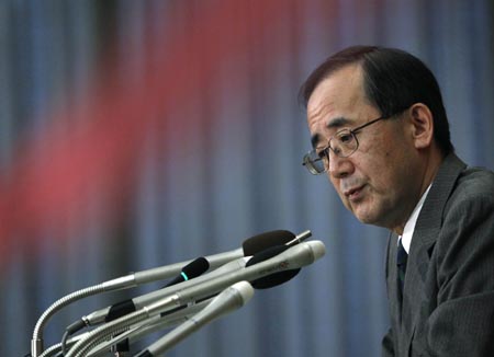 10月28日,在日本首都東京,日本銀行行長白川方明出席新聞發(fā)布會。 日本中央銀行——日本銀行28日發(fā)表《經(jīng)濟(jì)物價形勢展望報告》,對2010財年和2011財年日本經(jīng)濟(jì)增長率的預(yù)期均有所下調(diào),消費者物價指數(shù)則有望在2011財年轉(zhuǎn)為正增長。