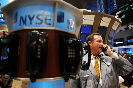圖為12月14日,交易員在紐約證券交易所內(nèi)工作。