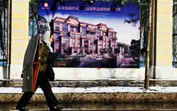 2月19日,一名行人從一樓盤宣傳廣告板前走過。2月18日,哈爾濱市政府正式下發(fā)《關(guān)于進(jìn)一步做好哈爾濱市房地產(chǎn)市場調(diào)控工作有關(guān)問題的通知》,《通知》規(guī)定,擁有兩套住房的哈爾濱市家庭將不能再買房。新華社記者