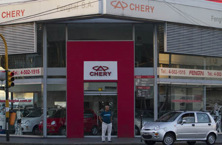 日前,在阿根廷首都布宜諾斯艾利斯,奇瑞索馬克汽車公司的一家門店正在營業(yè)。由于阿根廷政府加強對進口產(chǎn)品的限制,由中國、阿根廷和烏拉圭三方合資的奇瑞索馬克公司在烏拉圭生產(chǎn)的奇瑞汽車向阿根廷出口受阻,影響了奇瑞汽車在阿根廷市場的銷售。