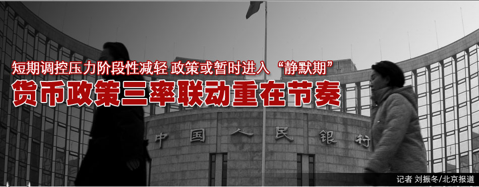 |   “GDP增長目標(biāo)8%、CPI控制目標(biāo)4%、廣義貨幣量(M2)增速目標(biāo)16%”——政府工作報告中的這3個數(shù)字,基本勾勒出今年預(yù)期的經(jīng)濟(jì)走勢和貨幣調(diào)控目標(biāo)。與去年的“8%、3%、17%”相比較,2011年的這組數(shù)字中的“一增一減”,體現(xiàn)了貨幣政策回歸常態(tài)的明確導(dǎo)向,也反映了通脹走勢對政策取向的影響。年初以來,為了“防通脹、穩(wěn)物價”,貨幣政策加大了回歸常態(tài)的力度,出現(xiàn)準(zhǔn)備金率、利率和匯率的“三率齊動”。二季度是否還會保持如前的緊縮力度?一些經(jīng)濟(jì)學(xué)家前瞻性地預(yù)測,隨著通脹擔(dān)憂情緒的減弱,在總需求呈現(xiàn)平穩(wěn)回落的態(tài)勢下,短期調(diào)控壓力將階段性減輕,政策將暫時進(jìn)入一段難得的“靜默期”,未來的重點(diǎn)在于如何把握三率聯(lián)動的節(jié)奏。