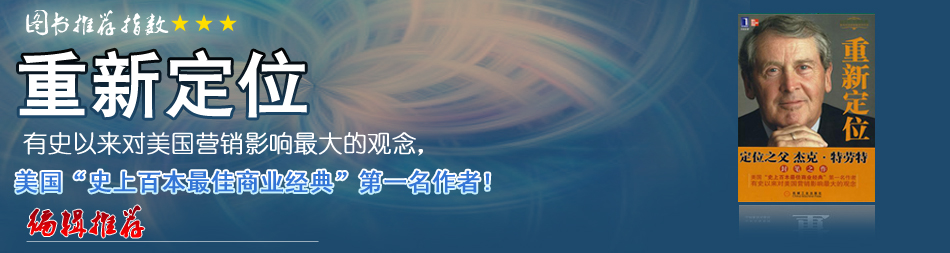 《重新定位》是特勞特先生40年商業(yè)經(jīng)驗的結晶,是對定位理論的完善和創(chuàng)新。作為打造品牌的重要理論,此書的出版正逢中國企業(yè)亟須品牌的時候,對中國企業(yè)而言可謂及時雨。而中國巨大的市場潛力,也正好可以讓“重新定位”實現(xiàn)其意義,因為無論是“定位”還是“重新定位”,都需要踐行才能體現(xiàn)價值…[詳細]