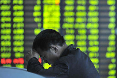 5月23日,股民在沈陽一證券交易大廳關(guān)注大盤走勢。