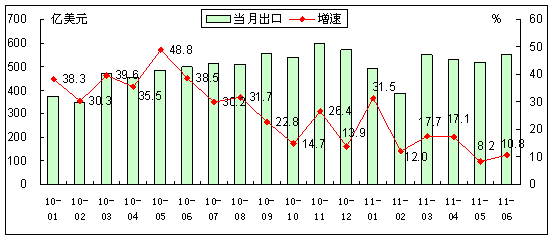 圖1 2010年以來(lái)我國(guó)電子信息產(chǎn)品月度出口情況 |
