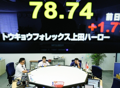 圖為8月4日日本東京一家外匯交易市場交易室。 當日,日本財務大臣野田佳彥宣布,日本政府和中央銀行當天上午在外匯市場售出日元,阻止日元進一步升值。這是日本政府4個多月來首次入場干預日元匯率。受此消息影響,4日東京外匯市場上午交易時段日元對美元匯率驟然走低1日元以上,目前在78比1區(qū)間波動。今年3月17日,日元對美元匯率創(chuàng)下76.25比1的歷史新高。