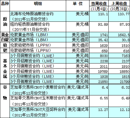 國際大宗商品期貨價格明細表[2011-11-07]