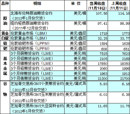 國(guó)際大宗商品期貨價(jià)格明細(xì)表[2011-11-21]