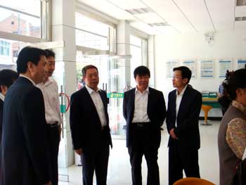漢中市郵政局李成仁局長(zhǎng)(右三)前往基層郵政支局調(diào)研。 |