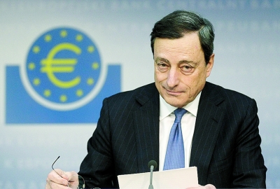 數(shù)據(jù)顯示11日歐元區(qū)銀行在歐洲央行的隔夜存款超過4800億歐元,顯示出歐元區(qū)銀行當(dāng)前依然十分謹(jǐn)慎。2月份歐洲央行將就三年期貸款進(jìn)行第二次招標(biāo),因此此次歐洲央行議息會(huì)議保持貨幣政策不變,以觀察上次降息和注入流動(dòng)性等措施的效果,也符合會(huì)前各方預(yù)期。圖為歐洲央行行長(zhǎng)德拉吉出席發(fā)布會(huì)。