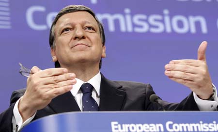 歐盟委員會30日發(fā)布針對各成員國及歐元區(qū)的預(yù)算措施、經(jīng)濟改革與穩(wěn)定財政等問題的一攬子建議。歐盟委員會呼吁用歐元區(qū)救助資金直接對“問題銀行”提供支持,應(yīng)對銀行業(yè)危機。 圖為歐盟委員會主席巴羅佐在布魯塞爾舉行的發(fā)布會上講話。