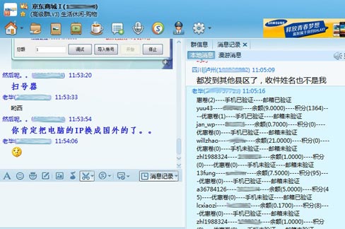 近日有多名網(wǎng)友反映京東商城賬戶信息遭泄露,賬戶余額被他人盜用,記者調(diào)查發(fā)現(xiàn),京東用戶賬戶信息泄露并非個別現(xiàn)象,有人在QQ群里公開了數(shù)百個京東賬戶的用戶名、密碼、余額和積分信息,記者隨機用其中的幾個信息嘗試登錄,均登錄成功,且用戶的所有信息均能查看。