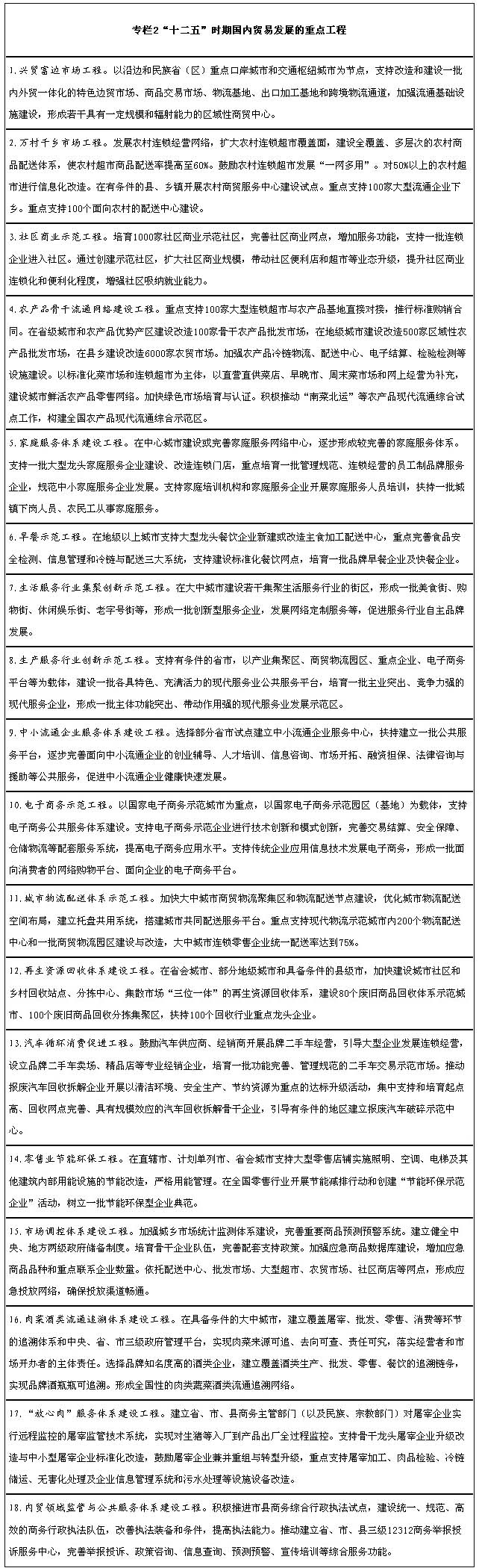 《國內(nèi)貿(mào)易發(fā)展“十二五”規(guī)劃》根據(jù)《中華人民共和國國民經(jīng)濟(jì)和社會發(fā)展第十二個(gè)五年規(guī)劃綱要》編制,主要闡明“十二五”時(shí)期我國國內(nèi)貿(mào)易發(fā)展戰(zhàn)略,提出發(fā)展政策導(dǎo)向,明確政府工作重點(diǎn),引導(dǎo)市場主體行為,促進(jìn)國內(nèi)貿(mào)易又好又快發(fā)展。
