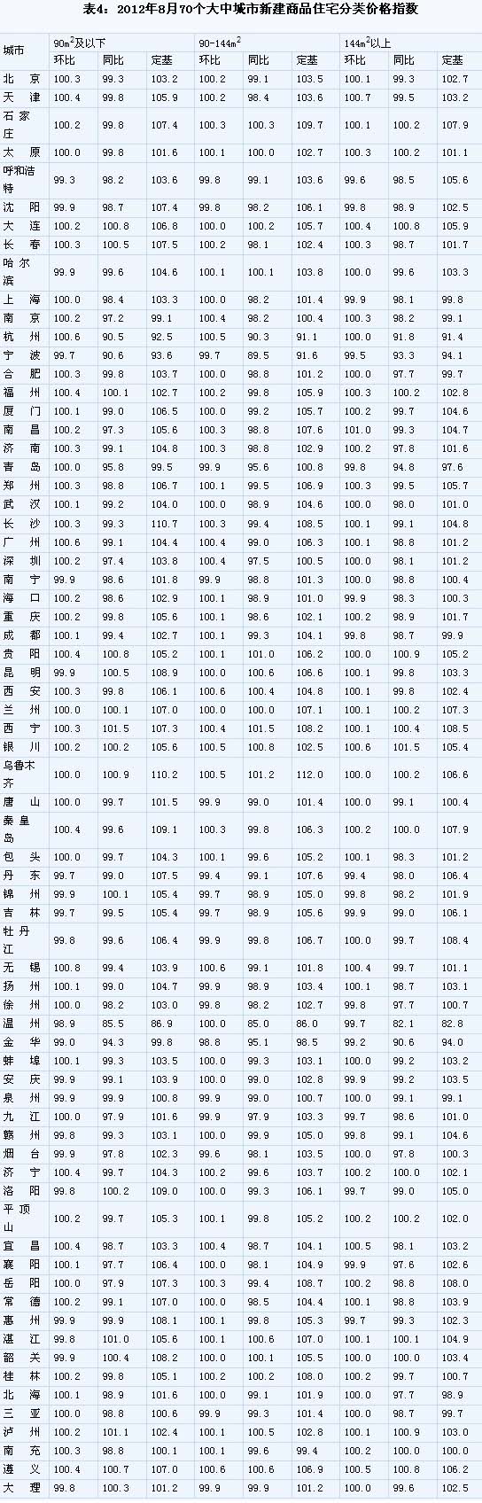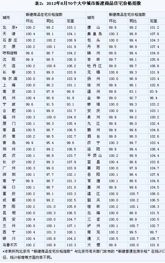 2012年8月份70個(gè)大中城市住宅銷售價(jià)格變動(dòng)情況