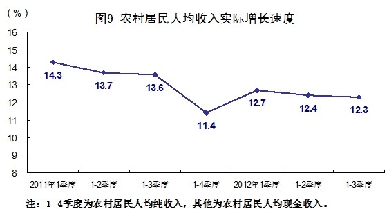 九、城鄉(xiāng)居民收入較快增長,農(nóng)村居民收入增速快于城鎮(zhèn)