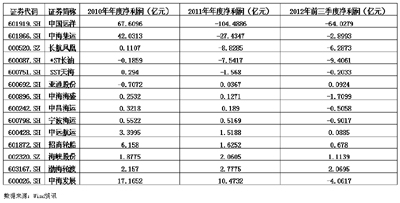 航運(yùn)業(yè)低迷直觀反映在上市公司的業(yè)績上。Wind統(tǒng)計(jì)數(shù)據(jù)顯示,2012年三季度,按照申萬行業(yè)分類,14家航運(yùn)類上市公司實(shí)現(xiàn)營業(yè)收入1032.8億元,同比上升5%;凈利潤則呈現(xiàn)全行業(yè)整體虧損局面,虧損總額達(dá)到了79.7億元,較去年同期的虧損57.3億元進(jìn)一步擴(kuò)大。14家上市航運(yùn)企業(yè)中,前三季度凈利潤出現(xiàn)增長的僅有三家,中海海盛、中昌海運(yùn)、寧波海運(yùn)和中海發(fā)展的凈利潤跌幅分別達(dá)到了587.2%、407.0%、224.6%和149.8%。14家企業(yè)中,有9家前三季度出現(xiàn)了虧損,中國遠(yuǎn)洋、*ST長油、長航鳳凰和中海發(fā)展分別虧損了64.0億元、9.4億元、6.3億元和4.1億元。