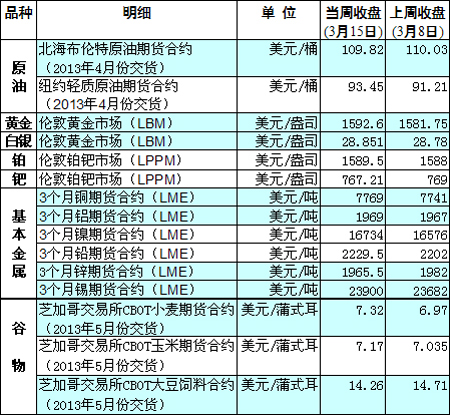 國(guó)際大宗商品期貨價(jià)格明細(xì)表[2013-03-18]