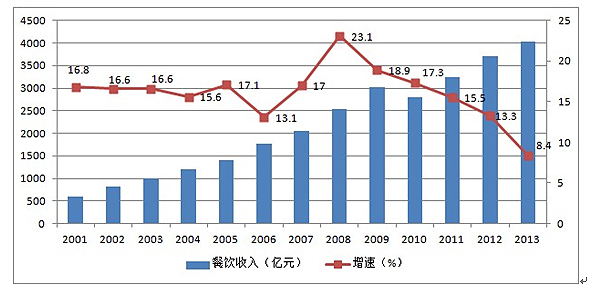 圖1:2001-2013年間1-2月餐飲業(yè)情況對(duì)比