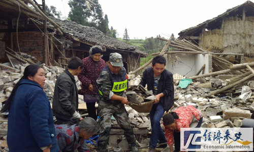 《經(jīng)濟(jì)參考報(bào)》記者劉振冬4月21日晚間傳回“4.20蘆山地震”,震中蘆山縣龍門鄉(xiāng)古城村地震現(xiàn)場(chǎng)圖片。龍門鄉(xiāng)多數(shù)房屋倒塌或損毀,現(xiàn)多支搶險(xiǎn)隊(duì)伍正在緊張搜救傷員。
