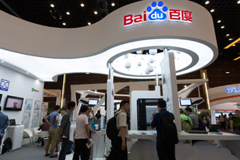 “第五屆中國云計(jì)算大會”日前在北京舉行。在云計(jì)算服務(wù)展示區(qū)域,參觀者在百度展臺參觀。記者