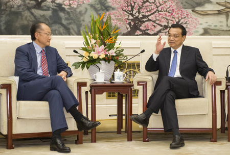 9月16日,國務(wù)院總理李克強(qiáng)在北京人民大會堂會見世界銀行行長金墉。