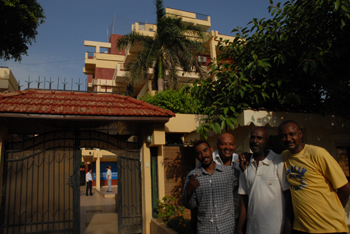 |   這座位于喀土穆利雅得區(qū)第16街區(qū)的5層居民小樓,就是中石油管道局蘇丹分公司和中油管道投產(chǎn)運行公司蘇丹分公司所在地。圖為聚集在分公司門前的蘇丹雇員!