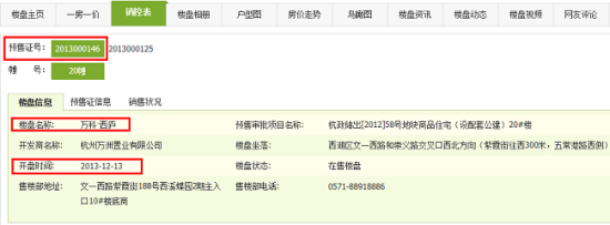 的確,根據(jù)透明售房網(wǎng)的數(shù)據(jù)顯示,幢號(hào)為20幢的萬科西廬房源,預(yù)售證在2013年12月13日就已經(jīng)拿出了,預(yù)售證號(hào)2013000146。