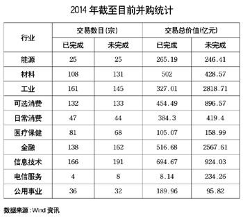 IPO市場的混亂并不能阻擋中國并購市場的超常規(guī)活躍。數(shù)據(jù)顯示,2014年以來,中國市場已完成和未完成的并購交易總金額高達1.2萬億元之巨。在經濟結構轉型、傳統(tǒng)產業(yè)陣痛和新興產業(yè)發(fā)展的大背景下,A股市場正在迎來前所未有的并購大時代。